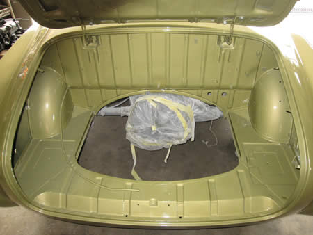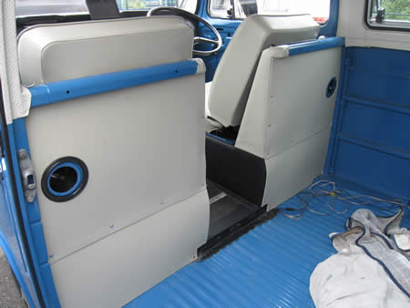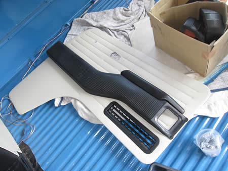 フロントシート裏のビハインドパネルの製作&張り替え、リアコーナーの張り替え、フロントキックパネルの張り替えまで完了したところで戻されてしまいました・・・。
