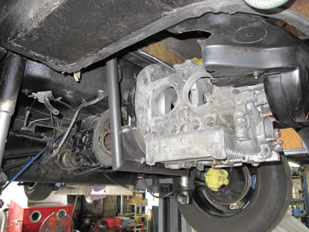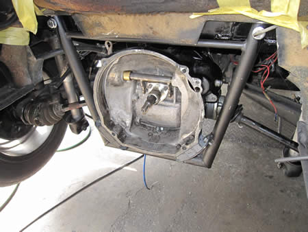 仮組みする事数十回??・・・ミッションハンガーのマウント部の加工も終わり、無事ミッションの車載が完了!!