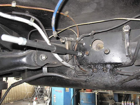 ボディーの方はと言いますと、エンジン&ミッションを降ろしたまでは良かったのですが、やはりフレームはAT専用にブラケット類が取り付けられ、全て剥がす事から始めます。