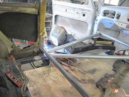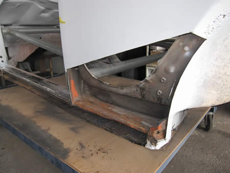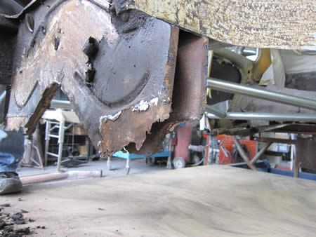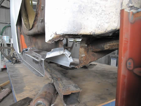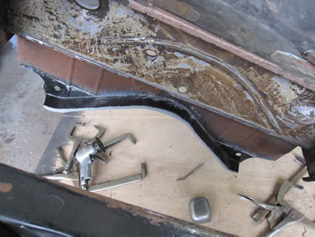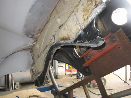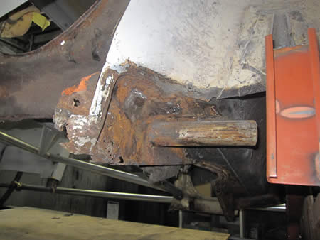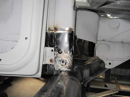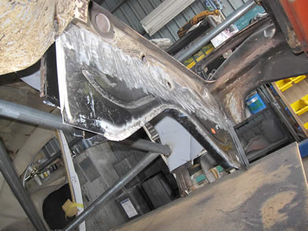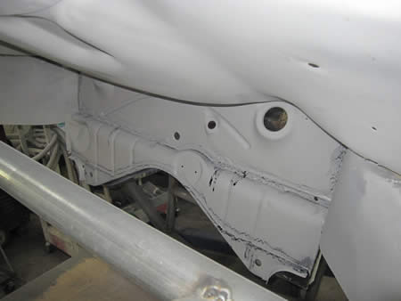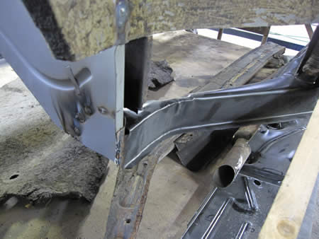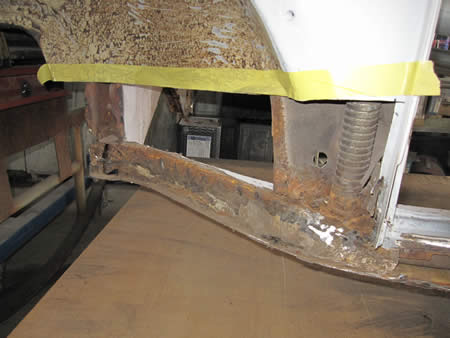 サイドメンバー、フロントファイヤーウォール、Aピラーの構造がよ〜く判るショットでしょ!
