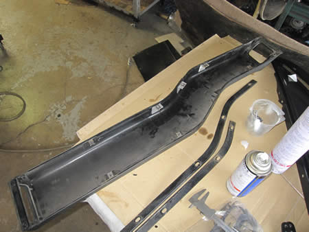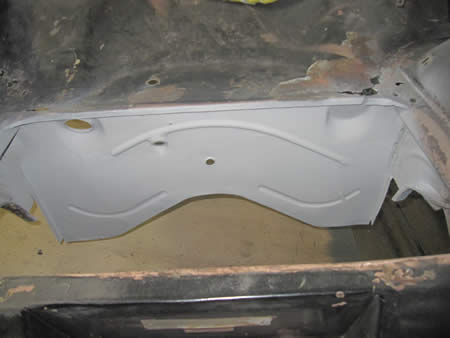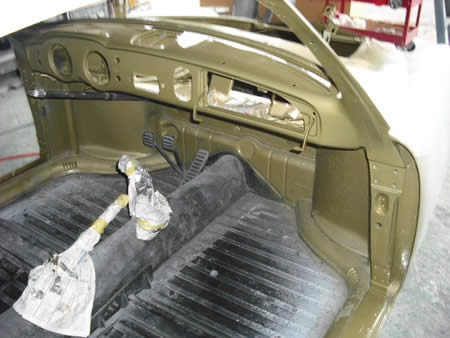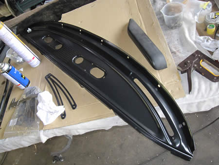 フロントファイヤーウォールパネルの内側にPOR−15を塗り防錆処理を行いました。