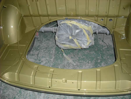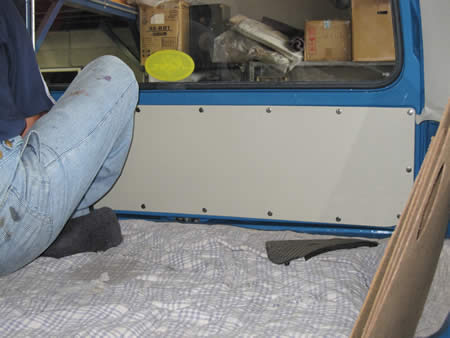 この部分は高年式のメンバーとプレスが一緒で、平らになっているんです・・・そのままではカーペットを張った時にカッコ〜悪くなってしまうでしょ!