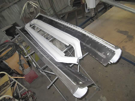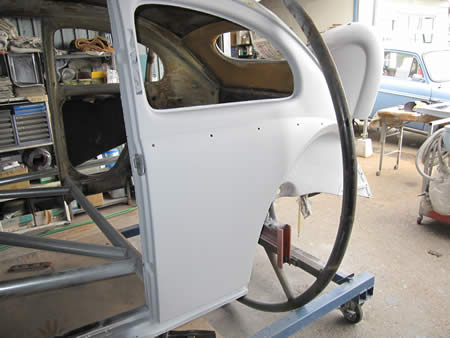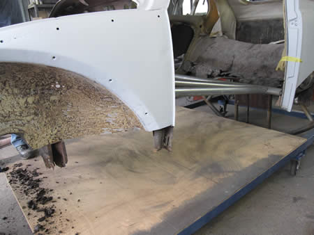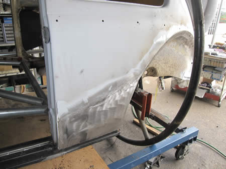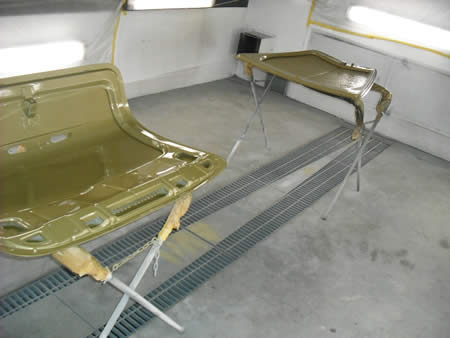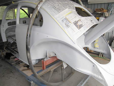 溶接が完了したフロントファイヤーウォールパネルに防錆処理を行い、サフェーサーが入りました!