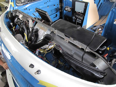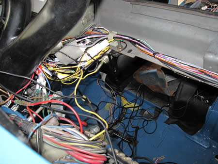 メーター裏の膨大な配線・・・全ての作動確認を行わなければ“フタ”ができません・・・(笑)