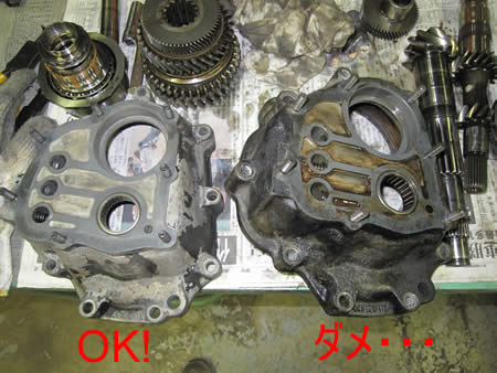 と言っても、この年式のハウジングはシフトロッドホールに摩耗が多く、そのままは使えません・・・。