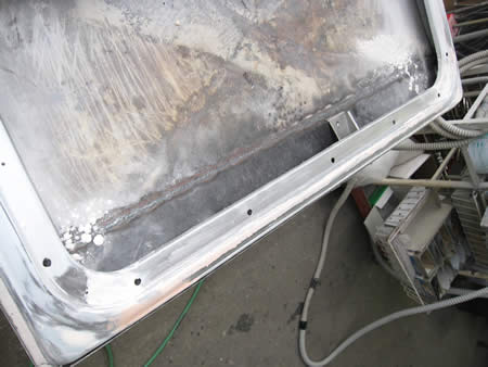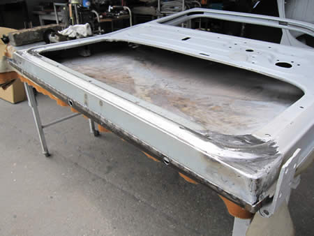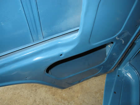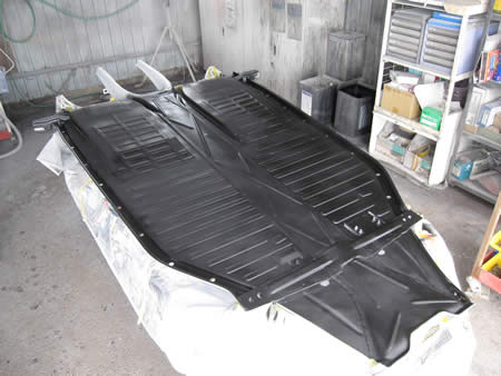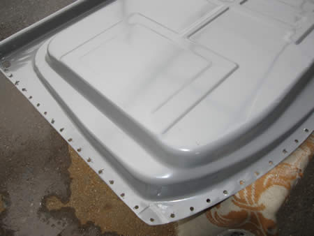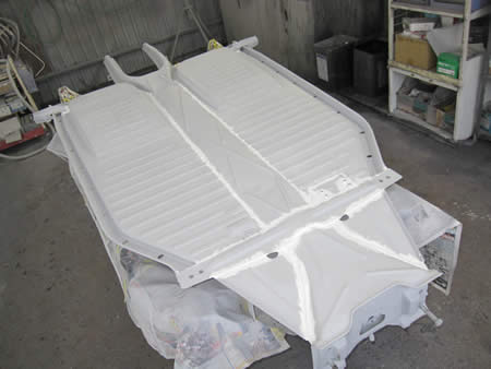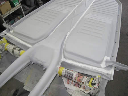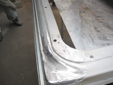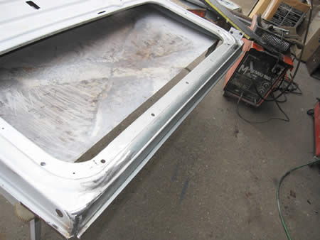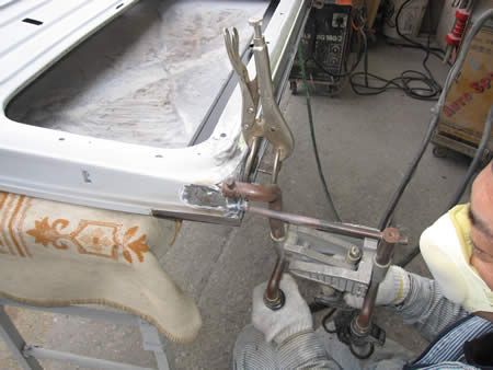 内側のサポートを取り付け、防錆処理を行ってからアウターパネルをスポット溶接しています。