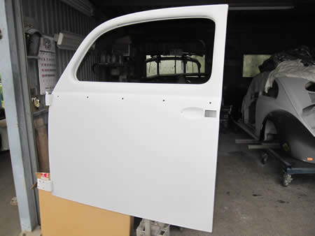 チョイト時間が掛かってしまいましたが、貴重な〜’55ドアは下手な板金でごまかすわけにはいきませんからね。