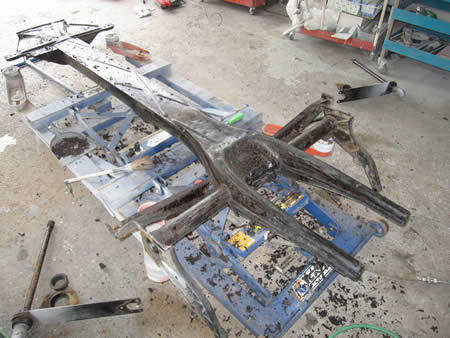 先ずはF&Rのサスペンション廻りを分解&ミッションも降ろします。