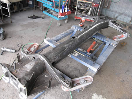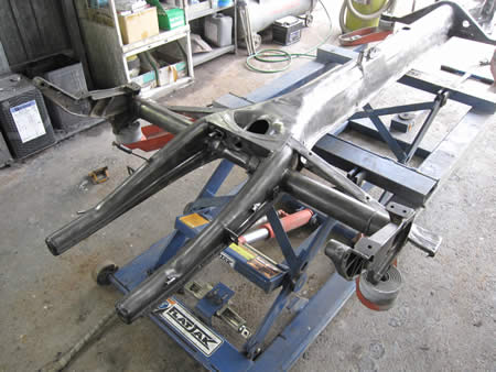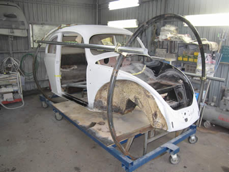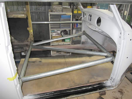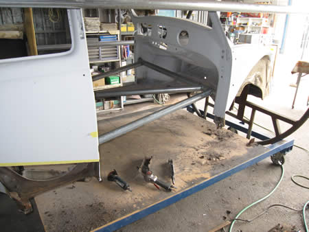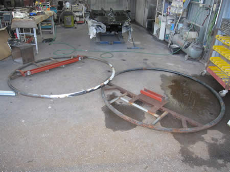 サークルに固定したボディーにはロールゲージ??みたいにパイプを溶接してボディーの補強を行ってあります。