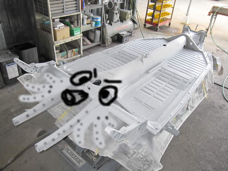 サイドメンバーの底板を外すと・・・スリラーに出てくる“ゾンビ”の服みたい・・・Oh〜〜no〜〜。