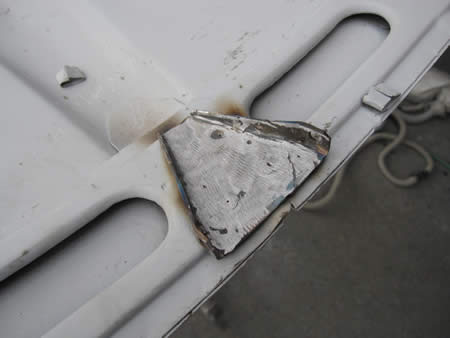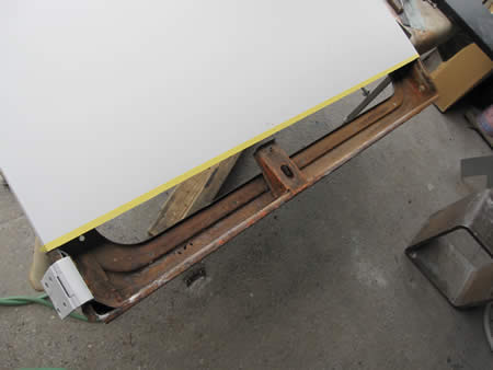 リテーナー裏側のパネルを切開してから、防錆鋼板で製作したパネルで張り替えを行っています。