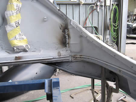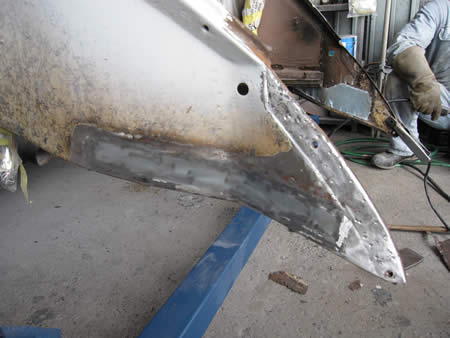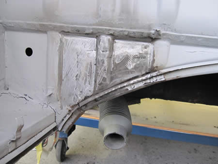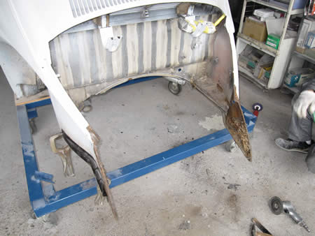 本来ならフェンダーアーチのパネル張替えを行いたいところなんですが・・・板金屋の体が悲鳴をあげておりまして・・・首から肩にかけて激痛が走っている模様・・・。