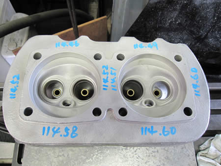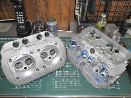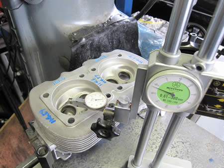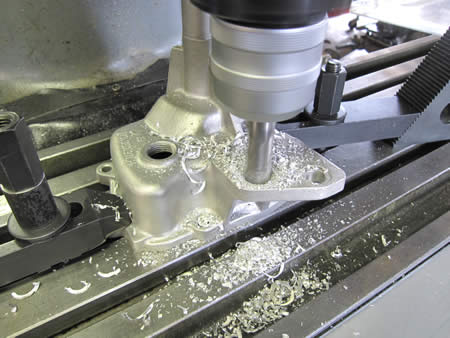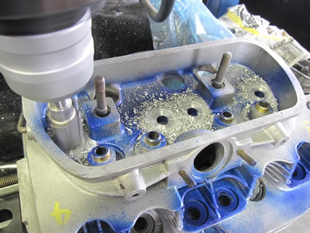 シリンダーヘッドをフライスに固定してシュ〜〜♪と削るとこうなります!