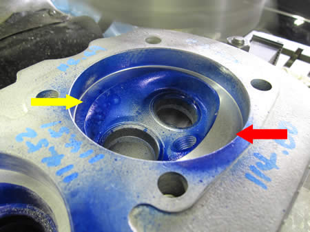 続いてシリンダー座面の歪みを点検してみると、約0.1mmの高さの不揃いが発覚・・・。