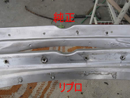 写真左の上が純正のエプロンから剥がしたパネルで、下がリプロのパネルです。