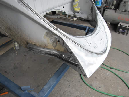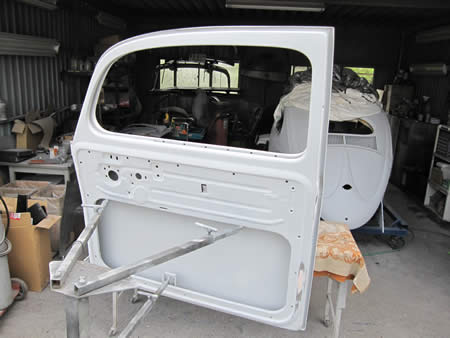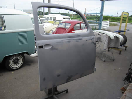 一枚の平板からここまで曲げるのに丸一日・・・この後ドアパネルを切開して製作したパネルを合わせていきます。