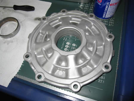 先ずは汚れを落として分解作業を始めると・・・デフのサイドカバーを外しリングナットを緩めようとすると・・・Oh〜〜〜〜〜no〜〜〜〜早くも挫折・・・。