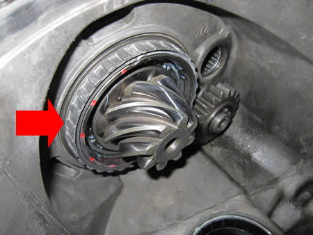 ピニオンのベアリングホール&デフサイドベアリングホール(赤矢印部)は本当に良い寸法でした!!