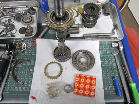 交換するのはスライダーリング、4thギアのニードルベアリング、エンドのボールベアリング、4thギア本体でございます。