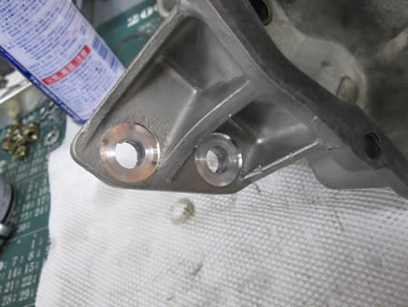 長穴だった部分をオーバーサイズに切削してから製作したブッシュを圧入しました。