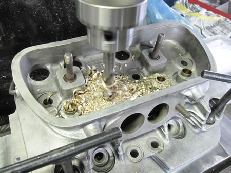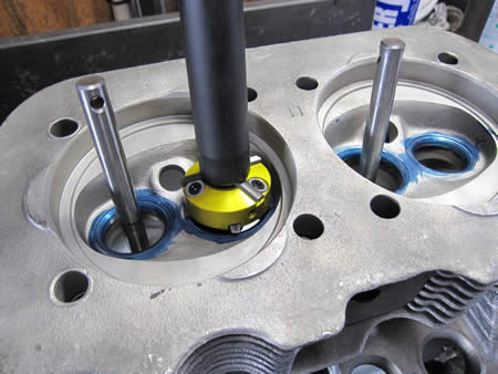 シリンダーヘッドのバルブシートカット作業です。