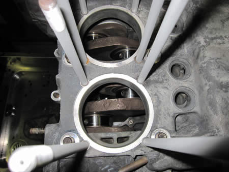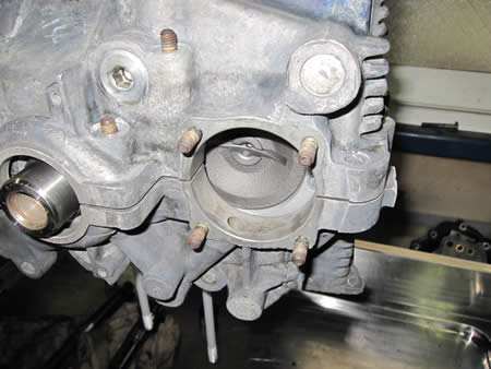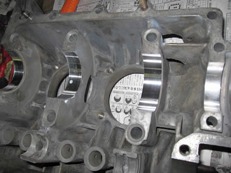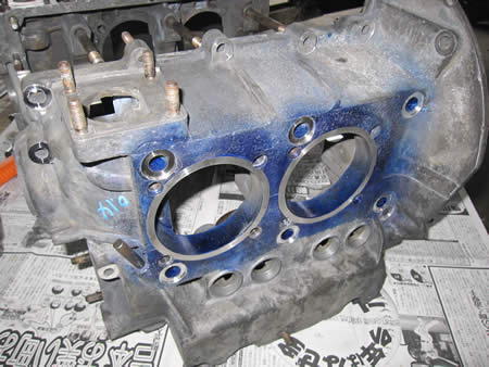 研磨作業が完了したクランクケースにクランクシャフト&カムシャフトを仮組みして回りを確認します。
