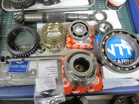 純正シンクロリング1〜4、Wテーパーベアリング&メインシャフトベアリングはFAG、デフサイドベアリングはNTNを使用します。
