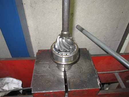 Wテーパーベアリングに「チタンコートグリス」を塗りピニオンシャフトにプレスIN!
