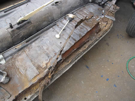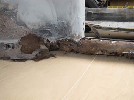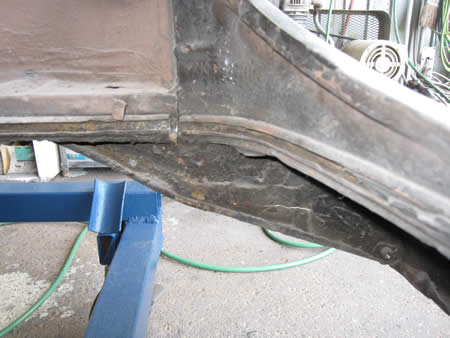 写真左はボディー側のAピラー廻りですが、サイドメンバーの下側はほぼ消滅・・・。