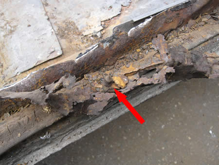 チョイト判りずらいですが、赤矢印部が唯一残っていたメンバーとフロアーを止めるボルト・・・。