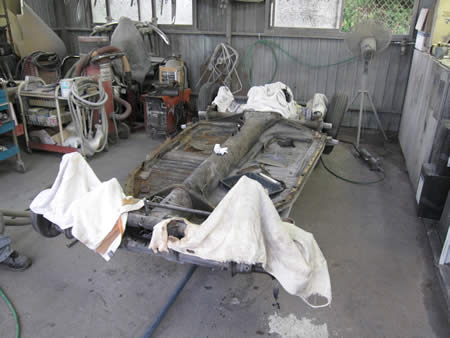 剥がしたボディーはしまいこんで、先ずはフロアーパンの張り替えから始めましょう!