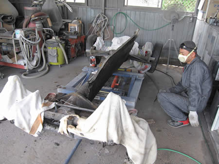 裏側もほとんどサビは進行していませんでしたが、念のためにPOR−15を塗り込みました。