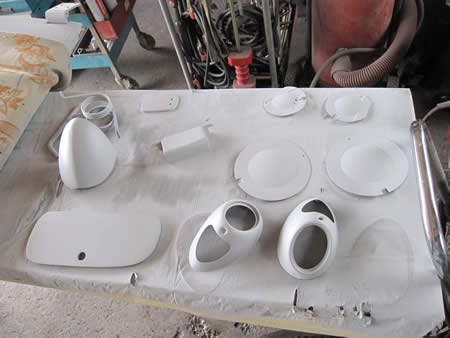 フロアーパンの入荷が来週になりそうなので、先ずはコマ物のブラスト処理後サフェーサーを入れました。