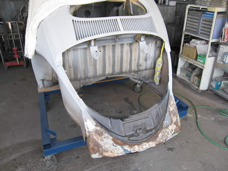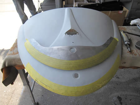 リアエプロン&左右のバンパーリテーナー廻りも切開してパネルの張り替えが必要・・・リアフードとの位置出しなども同時進行で行います。