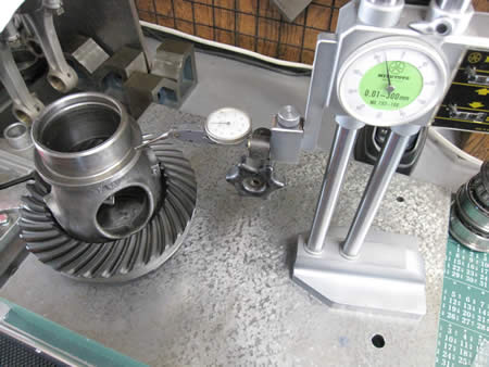 デフのハイト測定、ケース内測を行いシム厚を変えてバックラッシュの調整を行っています。