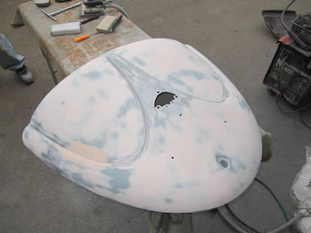全面にパテは入ってしまいましたが、ハンマーリング作業を行っていますから極薄パテでございます!