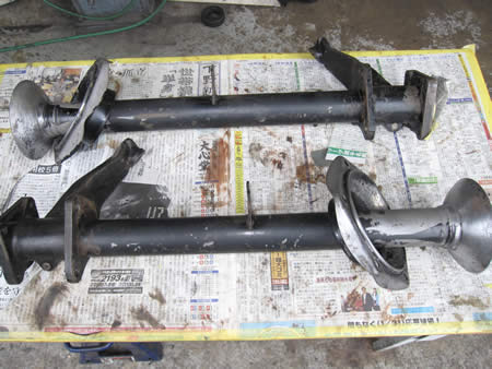 先日お伝えした「〜’67BUSのスピンドルO/H作業 」ではスピンドル側のブッシュ穴が広がっていたためブッシュをワンオフで製作し内外径共に変更しましたが、今回のスピンドル側の穴は問題無し。