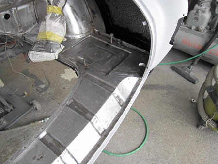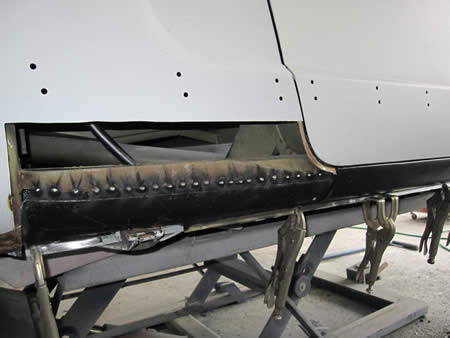 腐食で消滅してしまったロッカーのインナーパネルを、防錆鋼板で製作しています。