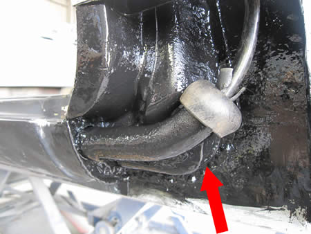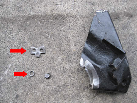 車体に取り付けた後位置を決めて溶接して頂くよう、元のプレートに穴開け&丸棒を旋盤で切削して“ボッチ”を製作しました。(写真矢印)