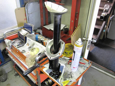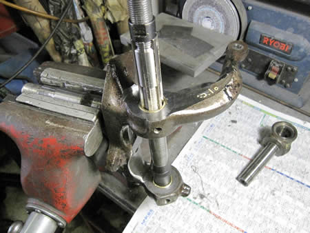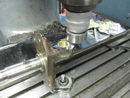 続いてブッシュの入れ替え後、アジャスタブルリーマーでキングピンの外形に合わせ切削します。