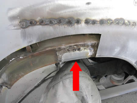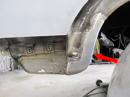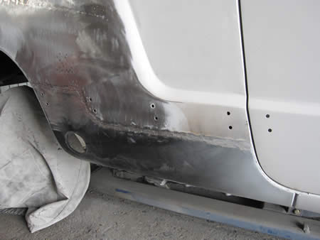 リアフェンダーアーチをバッサリ切り取り、裏側の腐食したパネルを張り替えています。