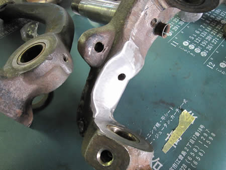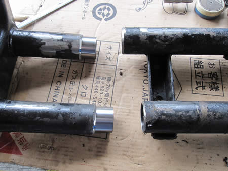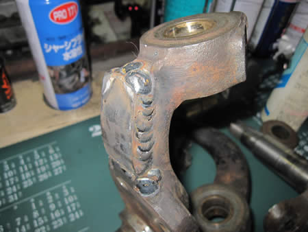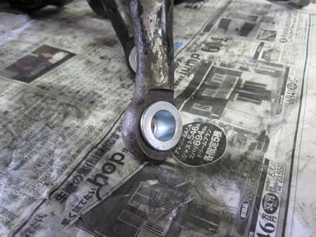 安価な市販のブッシュを使えるよう、ある方法でキングピンを修正いたしました。