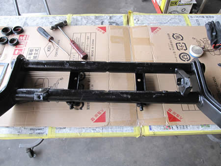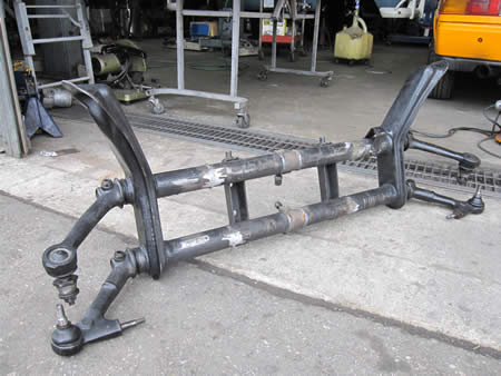 今回、ビームだけをお送りいただいての作業でしたので、ステアリングギアBOX用の位置決め&ストッパーブラケットは溶接せずにデリバリーとなります。
