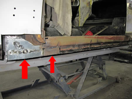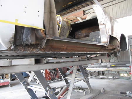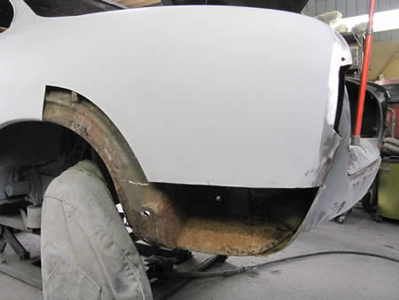写真右は・・・ご存じえぐられた事が原因で腐食が進んでしまったクォーター内側・・・。