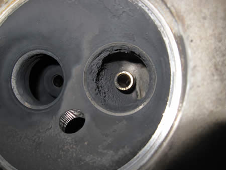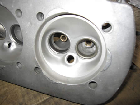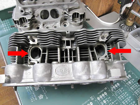オリジナルの燃焼室(写真中央)と見比べるとその違いがお判りいただけると思います。