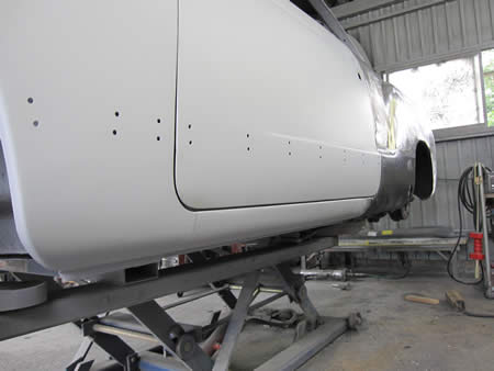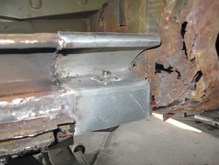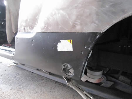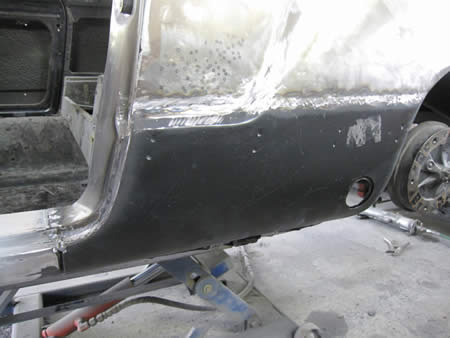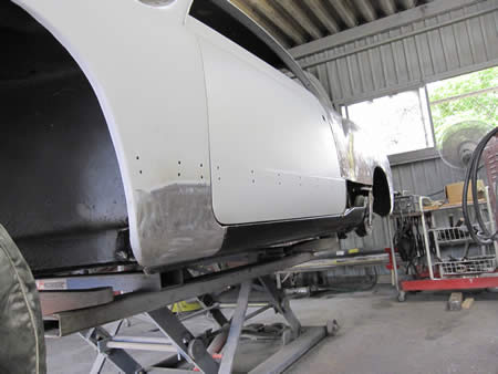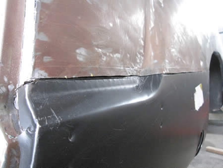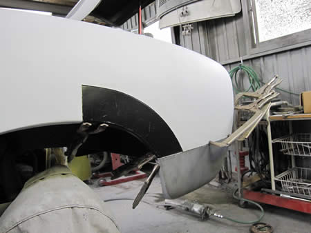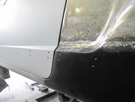 新たなアウターパネルをフランジングして仮付けしています。