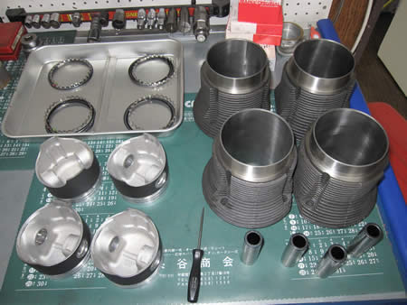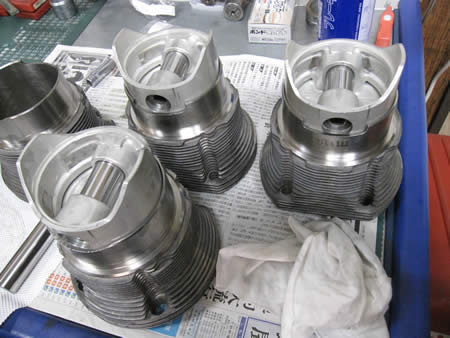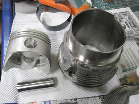シリンダー&ピストンは洗浄後にバリの確認、リングの位置調整を行いシリンダーに組み込み準備完了!
