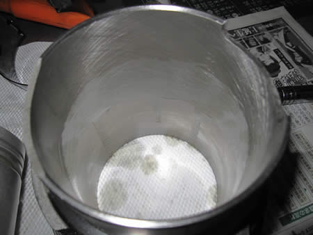 続いてピストン&シリンダーを一度分解して、ピストンの内側にあるバリを研磨します。