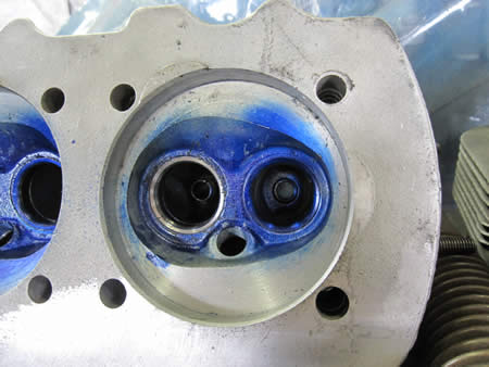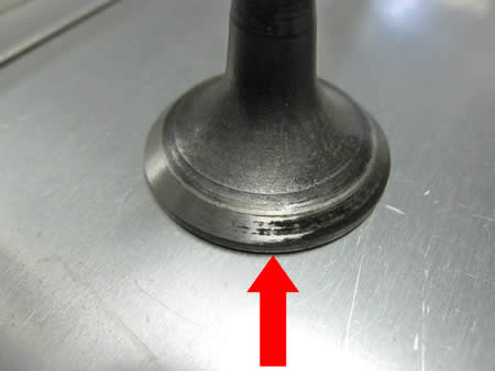 バルブシート&バルブフェイスの当たりが悪かった為吹き抜けていた痕跡があったシリンダーヘッド。