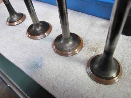 写真中央が研磨途中のエキゾーストバルブです。